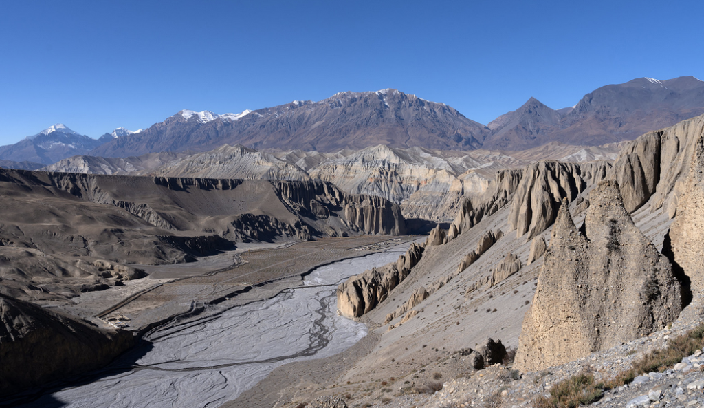 The landscape of Upper Mustang is fascinating, with canyons and sheer cliffs cut off by the wind. Its arid plateaus are wide under blue skies, and the setting of the surreal, desert-like Himalayan landscape is not very often observed in the mountainous Nepal landscape.