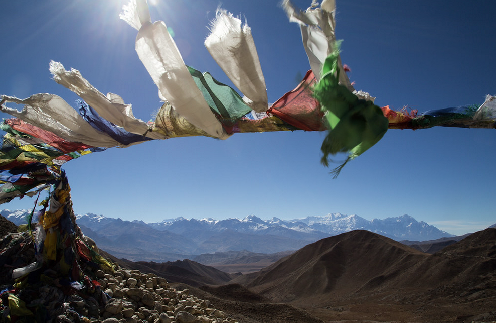 The geography of the region is an arid or semi-desert landscape with cliffs. Large plateau views and ancient villages are a sharp contrast to the green mountain sceneries of Nepal that have an unfamiliar, almost celestial appeal that the traveler embraces.